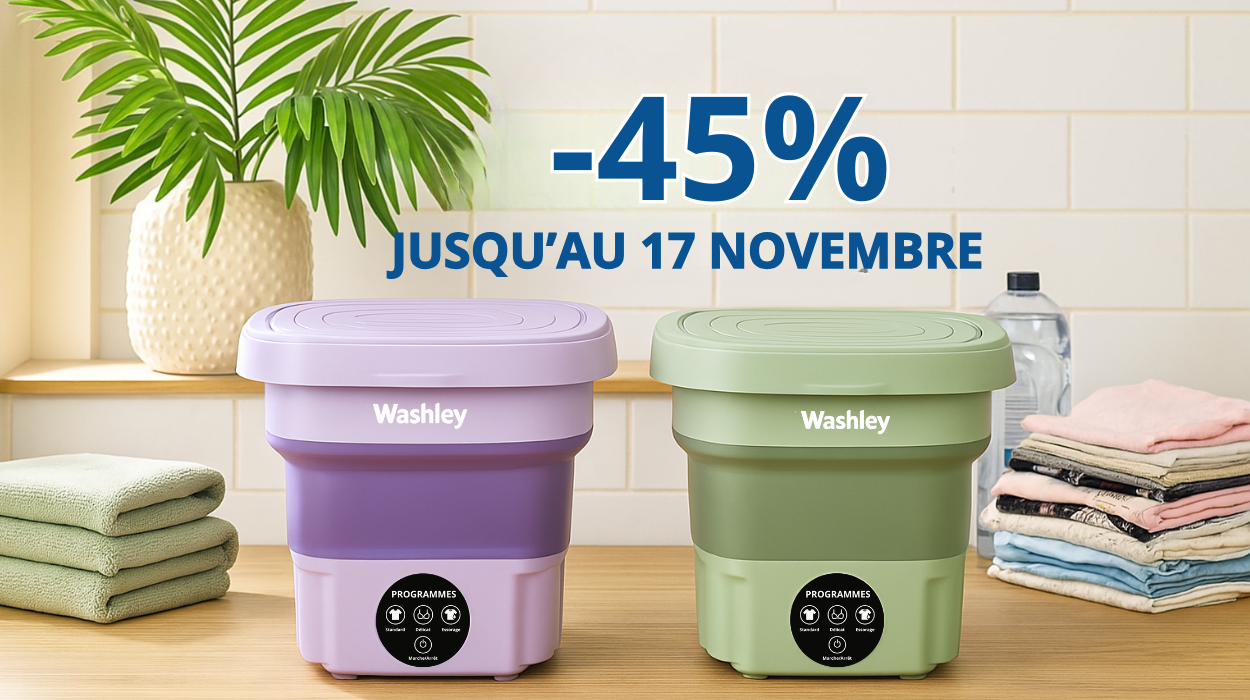 Geen zin meer in dure wasserettes en logge wasmachines? Washley™ vouw je in één beweging op en start een wasprogramma in 10 minuten. Bespaar tijd, ruimte en tot wel 70% water!